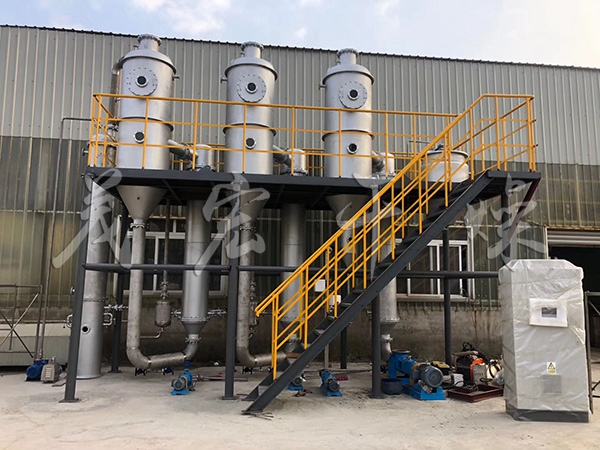 廢水蒸發(fā)器主要特點:1.設(shè)備整個加熱系統(tǒng)由于蒸汽加熱均勻、料液為液膜式流動蒸發(fā),所以具有傳熱效率高加熱時間短等主要特點。如再配置熱壓泵,更具降…